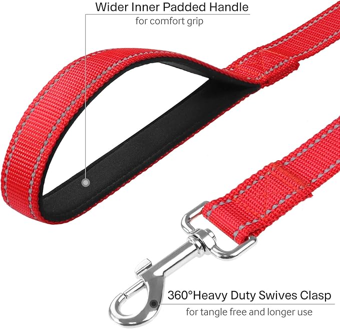 6FT Reflective Dog Leash with Soft Padded Handle for Training,Walking Lead for Large & Medium Dog,1 Inch Wide,Red